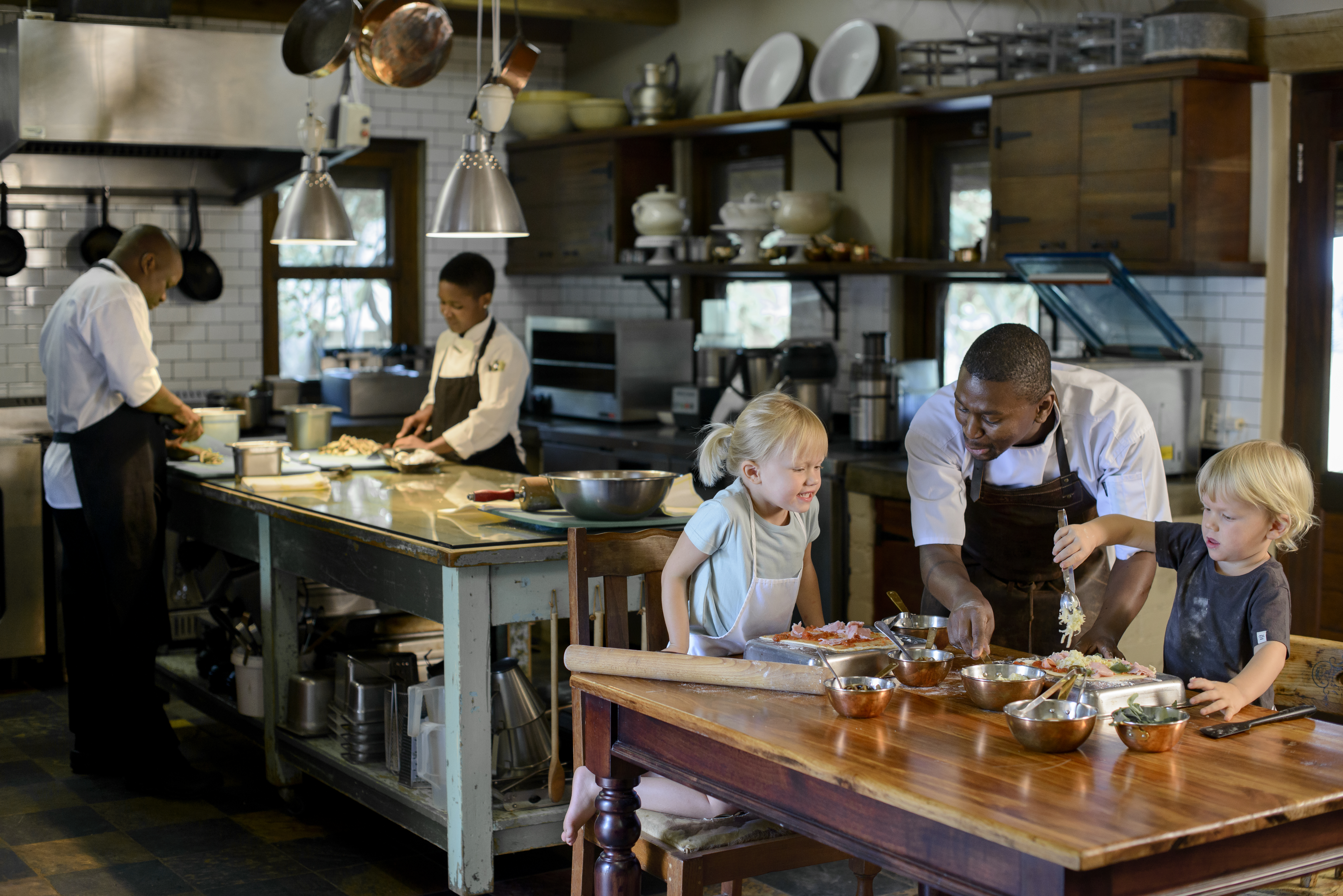 Singita Sabi Sand_Castleton_Kids making pizza in kitchen